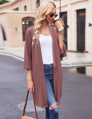 Ekouaer Robes for Women Waffle Knit Bathrobe Soft Lightweight Knee Length Loungewear S-XXL