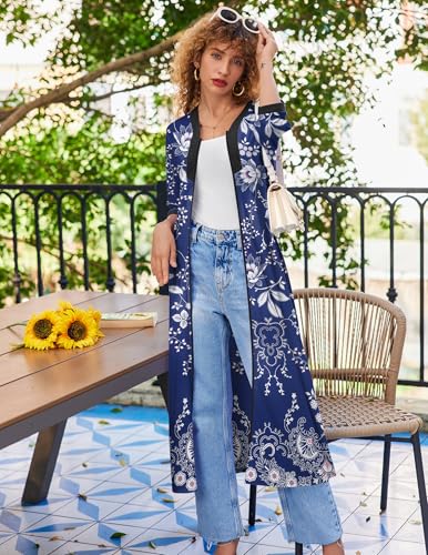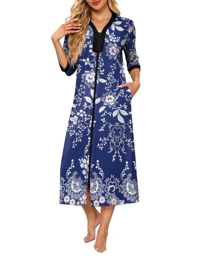 Ekouaer Women’s Zipper Robe 3/4 Sleeves Housecoat Full Length Nightgown Soft Loungewear Robe with Pockets S-3XL