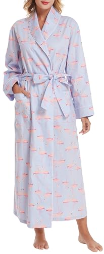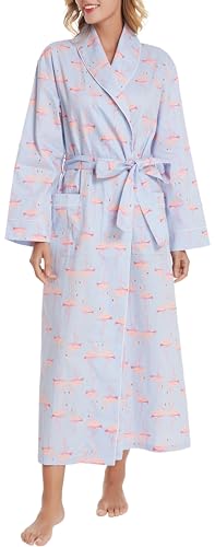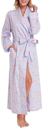 Lavenderi Women’s 100% Cotton Long Kimono Lounge Bathrobe Robe, Ladies Loungewear for Spa