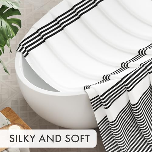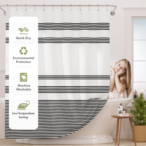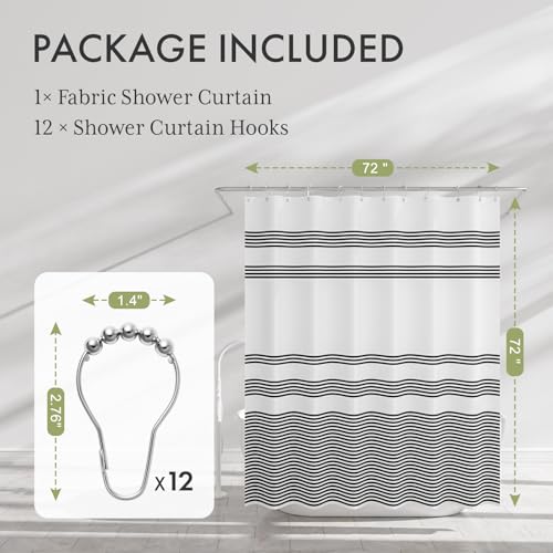 AmazerBath Shower Curtain, Washable Cloth Black Shower Curtain Sets with 12 Shower Curtain Hooks, Fabric Rustic Black and White Striped Curtain, Farmhouse Bathroom Curtains, 72×72 Inches