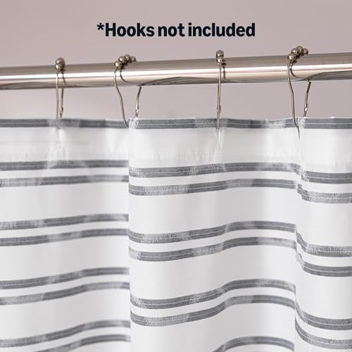 Amazon Basics Geometric Jacquard Fabric Shower Curtain for Bathroom, Lightweight, Waterproof and Washable, 72″ W x 74″ L, Grey Striped