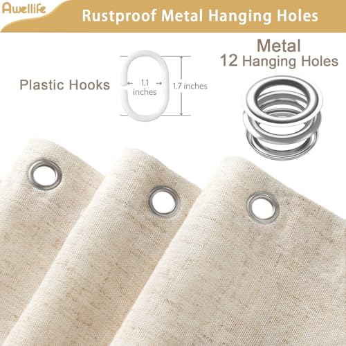 Awellife Linen Shower Curtain Beige Boho Farmhouse Shower Curtains for Bathroom Fabric Cream Cloth Liner 72 x 72 Inch