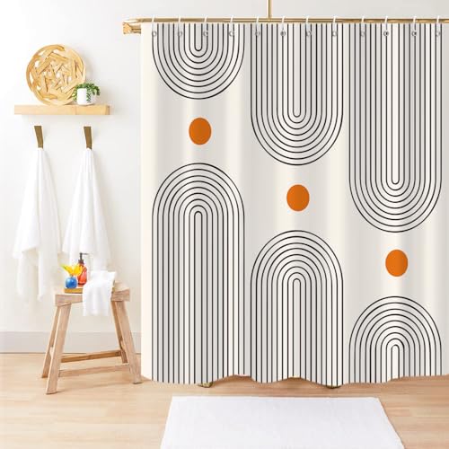 Boho Mid Century Shower Curtain, Minimalist Abstract Arch Simple Sun Modern Machine Washable Waterproof for Bathroom Decor Bathtub with 12 Hooks 72×72
