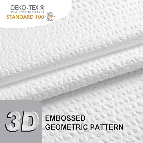 OVZME Berry White Shower Curtain, Embossed Textured Fabric Shower Curtain for Bathroom – Soft Cloth & Hotel Spa Luxury, Water Repellent, Machine Washable Shower Curtain, 72X72, White