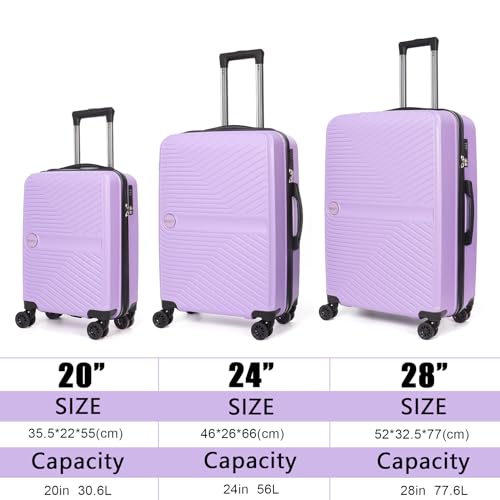 Luggage Set 3 Pieces -Suitcase Set – Carry on Luggage with Wheels – Check-in Luggage – PC + ABS Durable Suitcase Rotating Silent Wheels 3-Piece 20/24/28 Purple