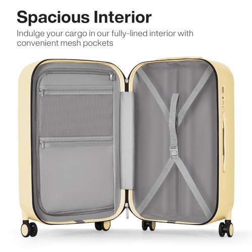 mixi 24 Inch Checked Luggage PC Hardshell Suitcases with Wheels for Travel Woman Men, Lark Yellow