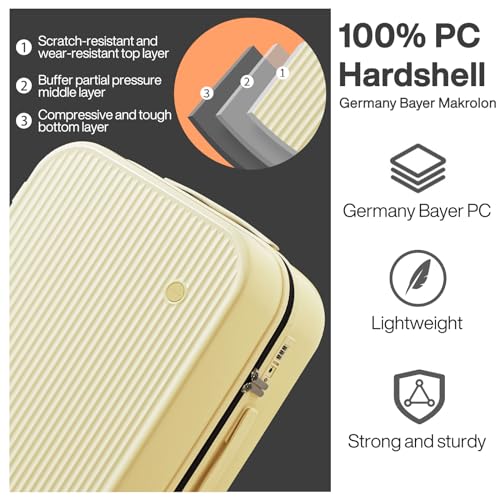 【DURABLE&STURDY MATERIAL】German Covestro PC material is called “Soft Steel” which is extremely scratch-resistant, it ensure this travel luggage’s high quality performance which is built to be your trusted companion to travel.