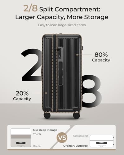 Ideal for Long Trips: The dimension of CENSEN 28″ trunk luggage is 30.31″ x 16.34″ x 14.96″, 100L capacity, 9.88 lbs weights; deep compartment design with large capacity for easily holds all essentials for long travel, family trips, and outdoor activities