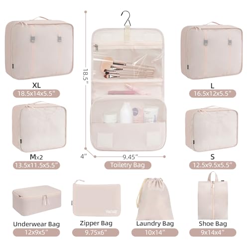 BAGAIL 6 Set/8 Set/10 Set Packing Cubes Various Sizes Packing Organizer for Travel Accessories Luggage Carry On Suitcase