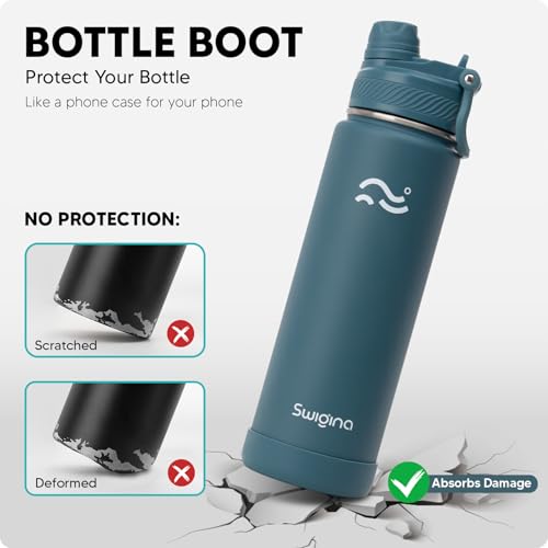 [2-IN-1 LID] Insulated Water Bottle with Silicone Boot (36hrs Cold/18hrs Hot) – DIY Stickers, Leakproof, BPA Free, 24 oz