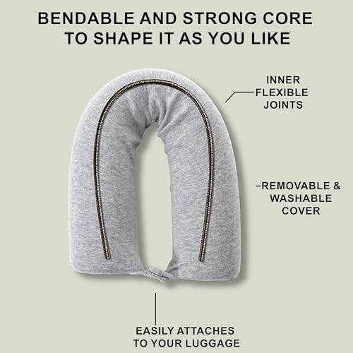Dot&Dot Twist Memory Foam Travel Pillow for Airplanes – Travel Neck Pillow for Sleeping – Airplane Pillow for Neck Support, Chin, Lumbar and Leg – Adjustable, Bendable Neck Roll Pillow