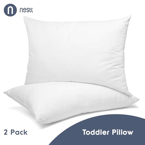Nestl 2 Pack Toddler Pillow for Sleeping 13 x 18, Small Kids Pillow for Travel, Car, School, Nap, & Toddler Bed, Machine Washable Soft Cotton Child 2 Year Old and Up – White