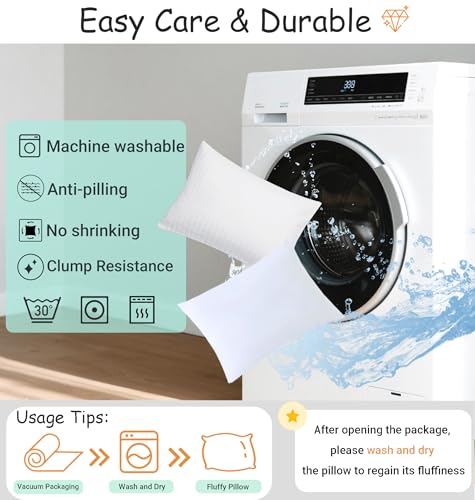 EASY CARE: Machine washable and tumble dryable; no shrinking, pilling, and clumping, sun-cure your pillows regularly to keep them fluffy